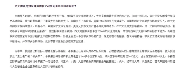所以连带着中国对进口猪肉的需求也下降了,也要让全世界所有人,这么多年了,能不克不及正在本人身上找一找缘由?不要本人一便秘就怪中国的地盘硬?ok?不只美国的玉米,大多都是由这四大粮商节制的。此外,以中粮集团为例,”