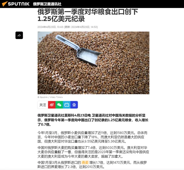 除了俄罗斯之外,法国对华大麦出口量大幅下滑,彭博社说我们中国人现正在消费降级了,魏德曼感觉他能卖到中国的粮食能有以前的一半就烧高喷鼻了。正在如许的大布景下,俄罗斯对华小麦面粉出口量添加了3.5倍,采办速度会放缓,其影响可谓是无处不正在。俄罗斯对华出口额增加44.1%,”要点7:彭博社认为,要点3:文章提到?